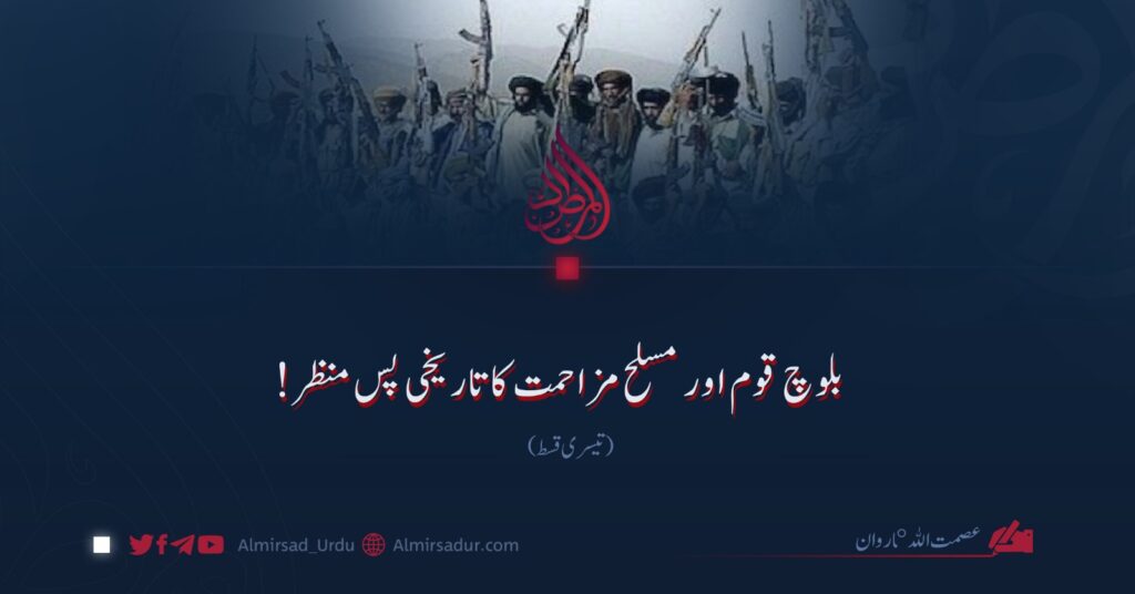 فوجی مظالم نے بلوچ قوم کے صبر کا پیمانہ لبریز کر دیا اور بالآخر ۱۹۵۸ء میں نواب نوروز خان بلوچ کی قیادت میں بغاوت پھوٹ پڑی۔ نواب نوروز خان بلوچ بیدار شعور، مضبوط ایمان اور غیرت کے حامل انسان تھے۔ وہ سینکڑوں مجاہدین کے ساتھ پہاڑوں میں جا نکلے اور پاکستانی فوج کے مقابلے میں بلوچ قوم کے عزت و ناموس کے دفاع کے لیے ایک خونریز جدوجہد کا آغاز کیا۔ یہ مزاحمت تقریباً ایک سال تک جاری رہی اور پاکستان کے لیے شدید دردِ سر بنی رہی۔ تاہم اس تحریک کو نہ تو خاطر خواہ اسلحہ میسر آ سکا اور نہ ہی دیگر قبائلی سرداروں کی بھرپور حمایت حاصل ہوئی، اور فوج کی سخت گرفت کے باعث اسے کچل دیا گیا، جس کے نتیجے میں یہ تحریک کوئی نمایاں کامیابی حاصل نہ کر سکی۔