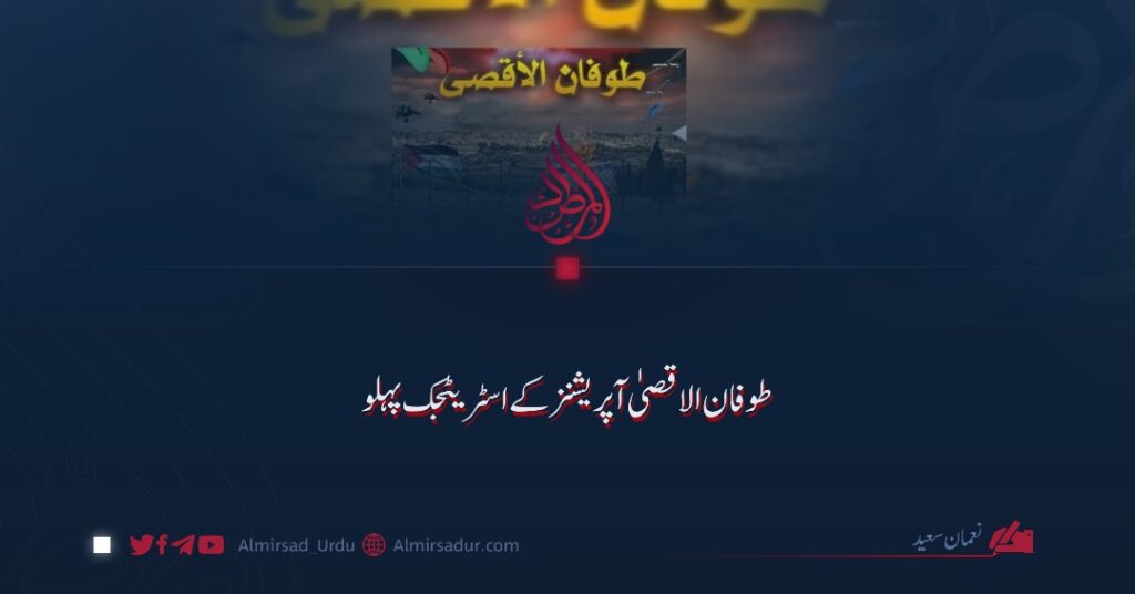طوفانِ اقصیٰ کا یہ آپریشن محض مقبوضہ علاقوں؛ الاقصیٰ اور غزہ میں قابضین کے جرائم کے ردِعمل تک محدود نہیں تھے؛ بلکہ یہ ایک گہرا اور پہلے سے منصوبہ بند اسٹریٹجک اقدام تھا جس کی بنیاد حماس کی مزاحمتی بصیرت پر رکھی گئی تھی۔ اس کا مقصد دشمن کے ساتھ جنگ کے اصولوں اور حکمتِ عملیوں کو نئے سرے سے متعین کرنا تھا۔ یوں جنگ کی صورتِ حال دفاعی مزاج سے نکل کر جارحانہ اور ابتکاری مرحلے میں داخل ہوئی۔
