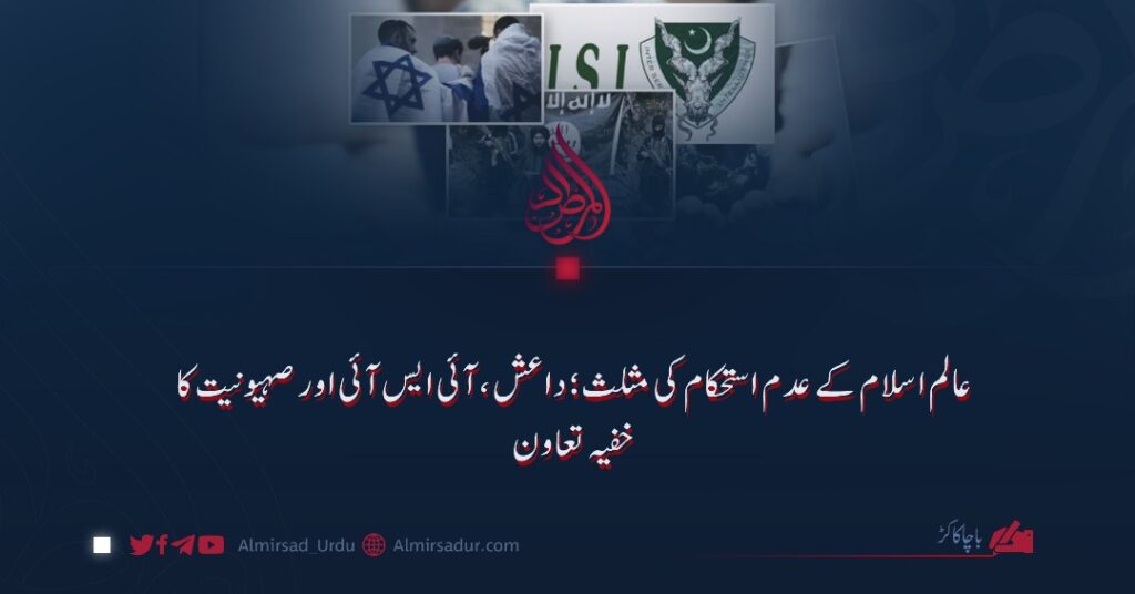 اس باطل محاذ میں صرف پاکستان اور داعش ہی نہیں تھے، بلکہ صہیونی ریاست کے خوارج کے ساتھ گہرے روابط نے اس خون آشام نظام کے لیے بھی مداخلت کی راہیں ہموار کر دیں۔ یوں داعش، پاکستان اور صہیونیت کا ایک سیاہ مثلث تشکیل پایا؛ ایسا مثلث کہ جس کے ہر پہلو کا نام اور نشان الگ ہے، مگر تینوں ایک ہی چھت کے نیچے جمع ہو کر اسلام کے خلاف اپنے مشترکہ منصوبوں پر عمل کر رہے ہیں۔