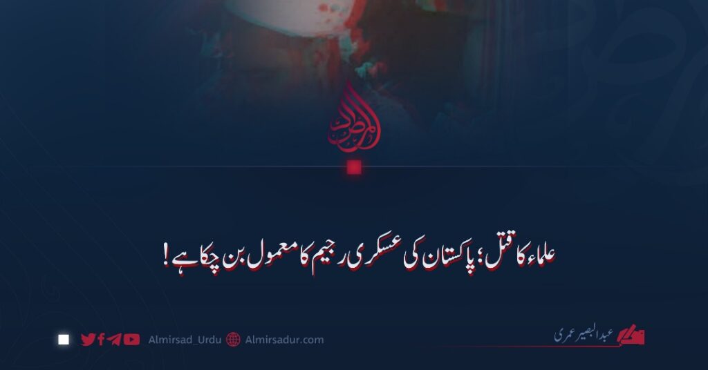 آج علماء اسلام کا قتل پاکستان کے طاغوتی فوجی رجیم کا ایک معمول بن چکا ہے۔ علماء کو ناحق شہید کرنا، قید و بند میں ڈالنا، ان کی توہین کرنا، انہیں حق بات کہنے سے روکنا، مدارس کو منہدم کرنا، علمی مراکز پر چھاپے مارنا؛ یہ سب وہ شرمناک اور خدا کے غضب کو دعوت دینے والے جرائم ہیں جن کی وجہ سے یہ نظام، قرآن کے بیان کے مطابق، ذلت، فقر اور رسوائی میں مبتلا ہے۔