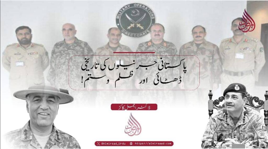 پاکستانی جرنیلوں نے نہ صرف اپنے ہی مسلمان عوام اور ہمسایہ ممالک کو ظلم کا نشانہ بنایا ہے، بلکہ خطے اور دنیا کے دیگر مسلمان بھی ان کے ظلم و تشدد سے محفوظ نہیں رہے۔ فلسطینیوں جیسی مظلوم قوم بھی ان کی سازشوں کی بھینٹ چڑھیں۔