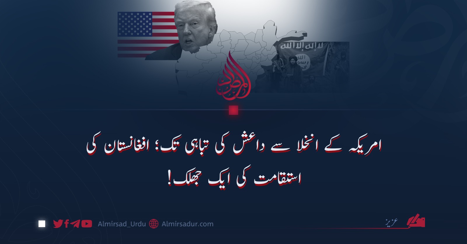 امریکہ، جو اس قوم کے ایمان کو توڑنے کی امید میں افغانستان پر حملہ آور ہوا تھا، اسلام کے محافظوں اور اس سرزمین کے سچے بیٹوں کے ساتھ بیس سال کی مسلسل جنگ کے بعد، بالآخر بھاری مالی و جانی نقصانات کی وجہ سے اسے مجبوراً یہ ملک چھوڑنا پڑا۔ افغانستان سے امریکہ کے انخلا کے بعد، وہ کٹھ پتلی جو داعش خراسان کے نام سے افغانستان میں جمہوری نظام اور قابضین کے سائے تلے پروان چڑھی تھی، زوال پزیر ہوئی۔