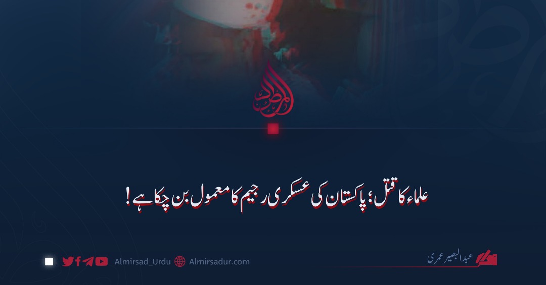 آج علماء اسلام کا قتل پاکستان کے طاغوتی فوجی رجیم کا ایک معمول بن چکا ہے۔ علماء کو ناحق شہید کرنا، قید و بند میں ڈالنا، ان کی توہین کرنا، انہیں حق بات کہنے سے روکنا، مدارس کو منہدم کرنا، علمی مراکز پر چھاپے مارنا؛ یہ سب وہ شرمناک اور خدا کے غضب کو دعوت دینے والے جرائم ہیں جن کی وجہ سے یہ نظام، قرآن کے بیان کے مطابق، ذلت، فقر اور رسوائی میں مبتلا ہے۔